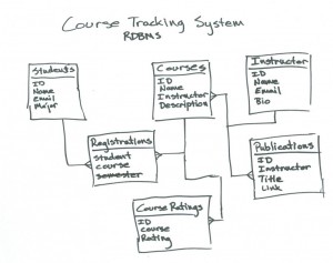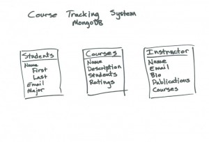 Now let’s build the course tracker database. The MongoDB website provides some great instruction and a few videos on its schema design for MongoDB page. First have a look at the relational schema and then the adjusted MongoDB schema.